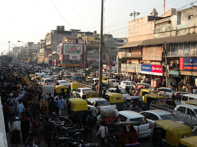 The rapid deterioration in air quality in cities like Delhi is the result of a combination of exploding populations and the lack of stringent government regulations to control smog and soot from rapidly growing industry, transport, and construction.1 Anumita Choudhury of the Centre for Science and Environment, a Delhi thinktank, says part of the problem, “is a mobility crisis as use of private vehicles has soared while public transportation has suffered chronic under-investment.”7 Between 1991 and 2011, Delhi’s population more than doubled to 22 million, and the number of cars increased five times to about 8 million, at a rate of half a million new cars per year.10 Another major contributor to air pollution in Delhi is the presence of the 70,000 trucks that drive directly through the city on long distance journeys. The government is aware of this issue but its plan to build a bypass has been delayed year after year.7 In the meantime, there is a very young poor population currently being exposed to this severe roadside pollution. Many children walk to school along busy roads, receiving extremely high doses of toxic chemicals and damaging particulates. The daily levels of toxic air in Delhi schools, which are often close to roads, are more than ten times worse than acceptable, according to the WHO.7