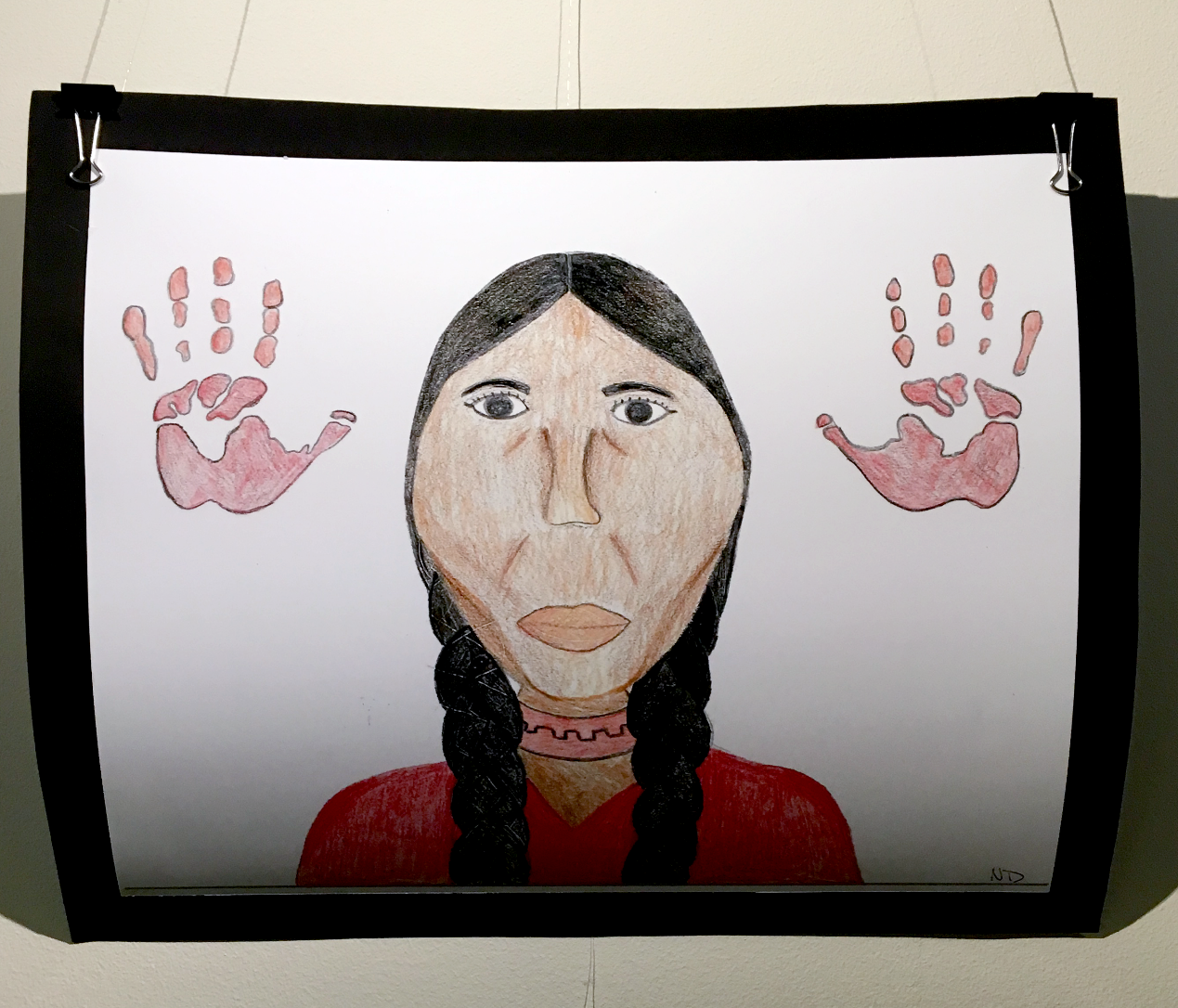 This artwork highlights the fact that indigenous women in the United States and Canada go missing and are murdered at a higher rate than women of any other racial or ethnic group. 61% of Native women in the United States have been assaulted at least once, often by a non-Native.1 One in three indigenous women in the United States are raped over the course of their lifetime.1 First Nations women account for only 4% of the female population, but represent 16% of murdered women.2
