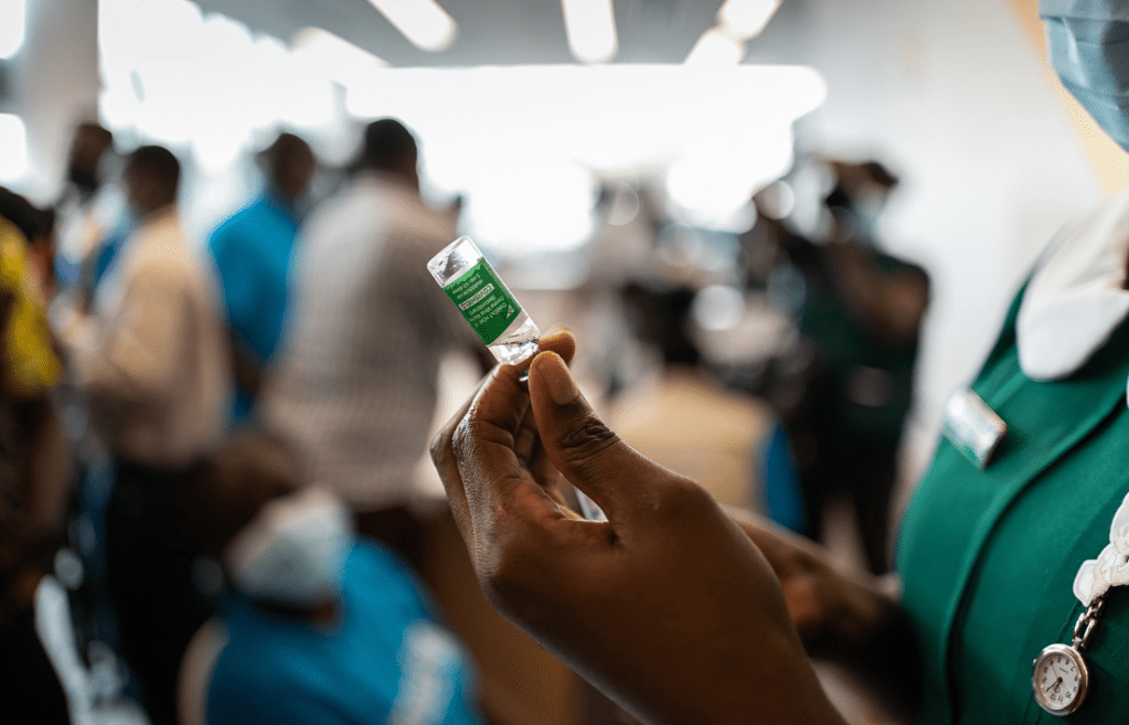 Nurse prepares to administer the AstraZeneca/Oxford COVID‑19 vaccine at Ridge Hospital, Accra, Ghana, 2 March 2021. © World Health Organization / Nana Kofi Acquah.