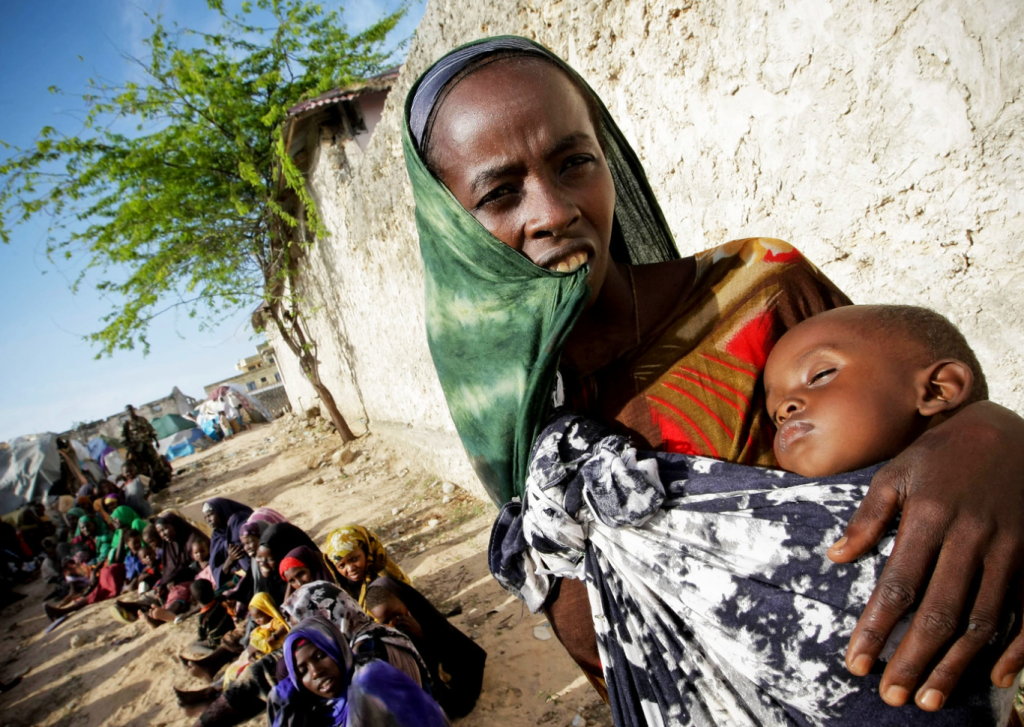Figure 1. A Somali woman holds a malnourished child while waiting for medical assistance in Mogadishu, Somalia. Image courtesy of United Nations Photo via Flickr. https://www.flickr.com/photos/un_photo/6025434303